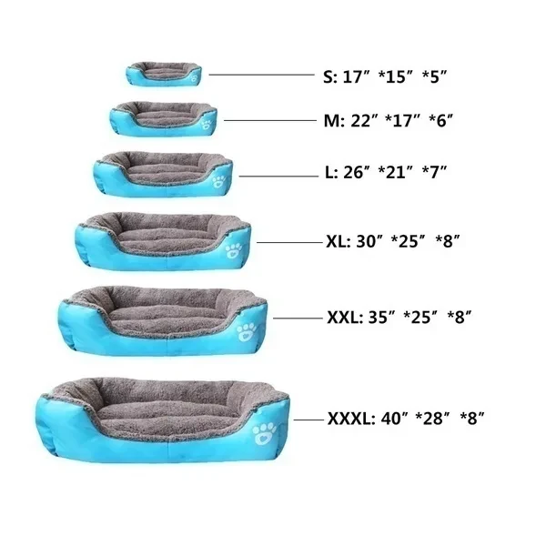 Size:S(20 inch x 16 inch x 6 inch;50CM*40CM*14CM), suitable for X-Small dog/cat under 10lbs; Weight: 350 g Material:Polypropylene Cotton Color:Blue,Pink,Orange,Green Size:M(24 inch x 18 inch x 4 inch;60CM*45CM*10CM), suitable for Small dog/cat between 10lbs-25lbs; Weight: 550 g Material:Polypropylene Cotton Color:Blue,Pink,Orange,Green Size:L(24 inch x 19 inch x 6 inch;60CM*47CM*15CM), suitable for Medium dog between 20lbs-50lbs; Weight: 750 g Material:Polypropylene Cotton Color:Blue,Pink,Orange,Green Size:XL(30inch x 25inch x 8inch), suitable for Large dog between 50lbs-75lbs; Weight: 1000 g Material:Polypropylene Cotton Color:Blue,Pink,Orange,Green Size:XXL(35inch x 25inch x 8inch), suitable for X-Large dog between 75lbs- 90lbs; Weight: 1200 g Material:Polypropylene Cotton Color:Blue,Pink,Orange,Green Size:XXXL(40inch x 28inch x 8inch), suitable for XX-Large dog more than 90lbs; Weight: 1400g Material:Polypropylene Cotton Color:Blue,Pink,Orange,Green Give your pet the most suitable house as soon as possible.