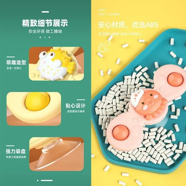 Cute Rotary Windmill Suction Spinning Toy Educational Toy Baby Toddler Kids Dining Table Bathing Car Window Love Marine Anime Fingertip Gyro Spinner Gift for Children Bathing Toys 1-3pcs