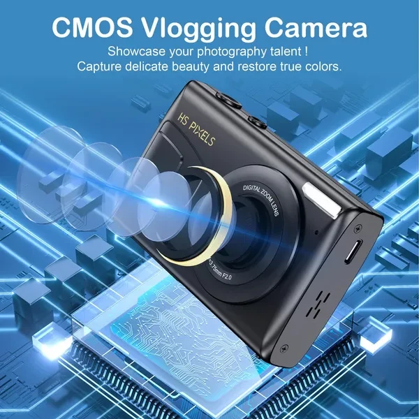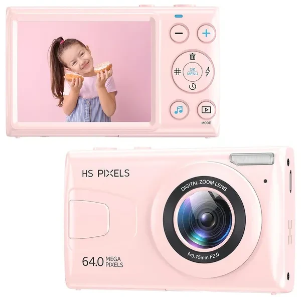 ?【Shoot Beauty with Easy】The kids digital camera captures high-clarity 4K videos and 64MP photos with a high-level CMOS sensor and Anti-Shake function.Let kids easily shoot the family warm picture. Simple to use, no need for complicated operation, only need to install the battery and ?SD card(NOT INCLUDED), switched it on within 2S. Tap the shutter, enjoy the fun of photography!
