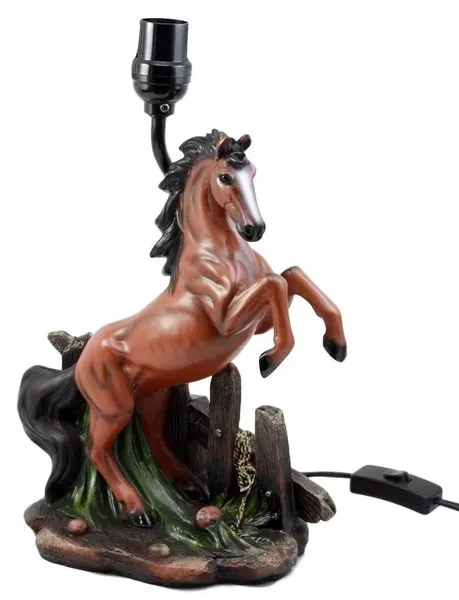 • This Rearing Horse Lamp comes with the shade as pictured. Made of polyresin, hand painted and polished, the quality finish is superb! Because all our products are individually hand painted work of art, the color tone may vary from the pictures. • The overall lamp measures about 19" tall. The shade 12" in diameter and 7.25" tall. • The body of the lamp measures approximately 13.25" tall, 8.5" long and 5.5" deep. • Use only Type A light bulb (not included), Max 40 watt. Approx. 4 1/2 ft. UL Approved electric cord with on/off switch. • This is an Ebros Gift exclusive collection.