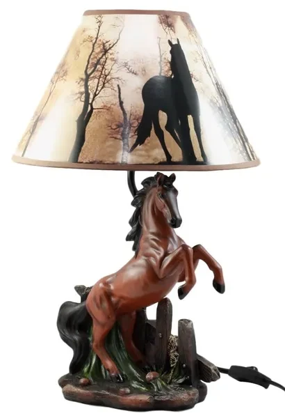 Ebros Gift Rearing Wild Chestnut Horse Stallion Desktop Table Lamp With Nature Printed Shade Home Decor 19Tall
