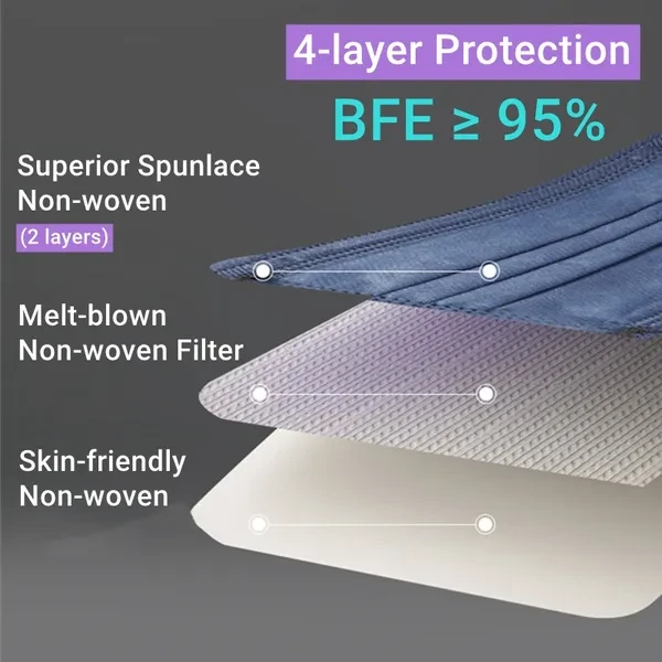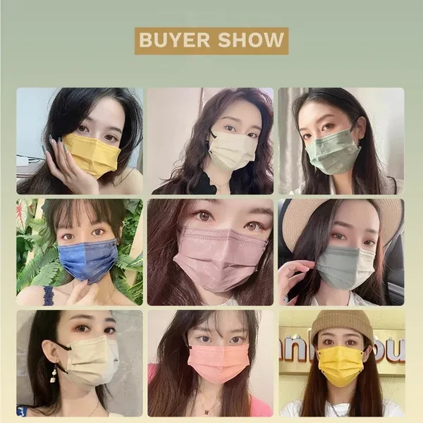 Size: 17.5 x 9.5 cm (One Size) Color: Sandy Brown Light Salmon Sea Green Sky Blue Beige Yellow Qty: 50 pcs 4-Layer Filtration High-quality non-woven fabrics and melt-blown polypropylene can filter over 95% of airborne particles, fumes, and odors and help you stay healthy and safe. Comfortable to Wear Skin-friendly non-woven fabric and elastic ear loops make it comfortable to wear. Applications Used for reducing the risk of breathing gases, harmful odors, pollen, smoke, dust, and other harmful particles, for hospitals, schools, travel, cleaning, painting, construction, outdoor activities.