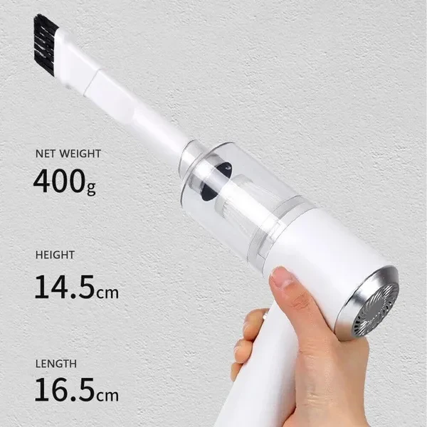 Features: Portable handheld vacuum cleaners can be used to clean hard-to-reach areas. Hand-held vacuum cleaner can be used as computer vacuum dryer, laptop vacuum cleaner, desk vacuum cleaner, car, piano, pet room, desk hand vacuum cleaner. USB rechargeable, car vacuum cleaner cordless built-in 2000mAh rechargeable lithium battery, can work continuously for 15-25 minutes, can be fully charged in 3-4 hours. Equipped with charging cable, can be connected to laptop, car USB port charging, mobile power, etc. Its HEPA filter is washable and reusable to keep dirt and dirt out and avoid clogging. Remove the filter from the vacuum cleaner's cup, wash it with water and dry it for a second use. (Tip: if the vacuum filter is full of dirt or suction is insufficient, please clean the filter in time to ensure that the dust collector works properly.) Hand-held car vacuum cleaner with 6Kpa strong suction, suitable for daily household cleaning dust. The output power of the 120W super power motor provides a strong suction of up to 6000pa, which can quickly and easily remove food residue, particles and pet hair in the house or car. Wet/dry vacuum wireless mobile operation is more convenient. Hand-held wireless professional car vacuum cleaner to keep your car and home clean every day. Specification: 100% brand new with high quality Size: 16.5 X14.5 X4cm Vacuum degree: 6000 pa Volume of dust cup: 0.5L Battery: 2000 mah Package Included: 1x Handheld Vacuum Cleaner 1x Washable Filter 1x Slit Nozzle 1x Multifunctional Brush 1x USB Charging Cable Note: The colors may be a little difference for the different monitor display. Please check as much as possible to make sure the item is the one that you need. Please allow 0.5-1 inch difference due to manual measurement.(1inch=2.54cm)