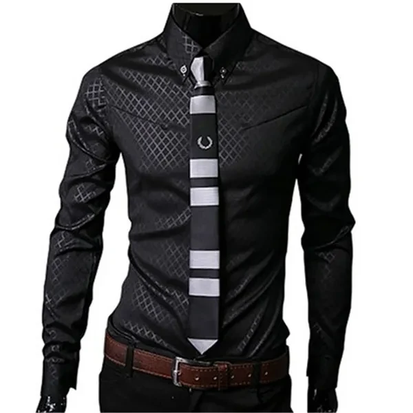 Description Specifications: dress shirt, business style. It features long sleeve, cotton blend, slim fit and button. It can show your good body figure and make you be more confident at office. Type: Dress Shirt Gender: Men's Size Type: Regular Material: Cotton Blend Sleeve Type: Long Sleeve Garment Care: Hand-wash Style: Fashion, Business, Casual Seasons: Spring, Summer, Autumn Occasions: Daily Life, Office, Business, etc Features: Button-Front, Slim Fit, Notes: This is Label Size(Asian/China size)about 2/3 sizes smaller than US AU EU size! Please, make sure of these actual measurements will fit you! The tie is not included.