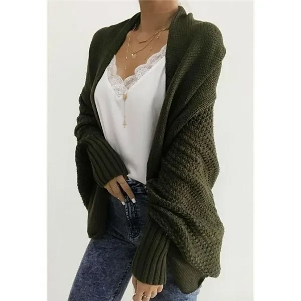Fashion Women Spring Autumn Long Sleeve Cardigan Sweater Casual Solid Color Loose Knitted Sweater Jacket