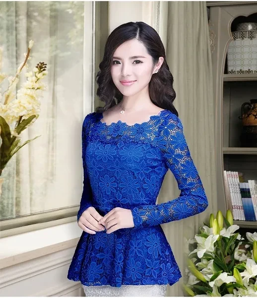 Fashion women tops New Women Ruffles blouse Long sleeve Lace Shirt Blouses & Shirts plus size women clothing Plus Size S-5XL