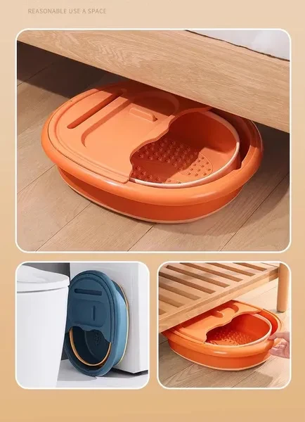 【Foot bath tub with massage acupoints and protruding points, easy to fold and store, saving space. Available in three colors】 Comfortable foot massage and therapy: This foot bath is equipped with 106 bottom massage protrusions and raised massage points for acupressure massage. It can effectively stimulate meridians and relieve fatigue. When soaking your feet, you can put foot salt or ginger slices into the water. The massager at the bottom of the foot bath can also help you clean dead skin on the soles of your feet. Space saving: A relatively bulky foot bath, this foldable foot bath can greatly save space. When folded, the foot basin is only 2.9 inches high and can be quickly unfolded and folded. Foldable foot baths can be easily placed in the bathroom, under the bed, or hung up. Thicker and larger capacity design: The foot bath basin is made of PP and TPE rubber, making it more durable. Thickened materials can effectively extend the cooling time of hot water, are reusable, and are easy to dry. The foldable foot bath is 9.8 inches high and can hold approximately 15L/4 gallons of water. A large capacity can help your feet stretch better. Release the fatigue of the day: This foot bath massager allows you to enjoy the comfort of a foot bath. Soaking feet can soothe muscles, moisturize the skin, and relieve pain when standing for hours or walking in uncomfortable shoes.