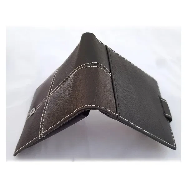 100 Genuine Cowhide Leather ? full grain Material Standard size button closure style wallet Combination of Black and Coffee colours 2 x main money portions, 3 x card holder pockets, 1 x ID card holder, 2 x multipurpose inner pockets, 1 x coin holder High quality, durable and long lasting material