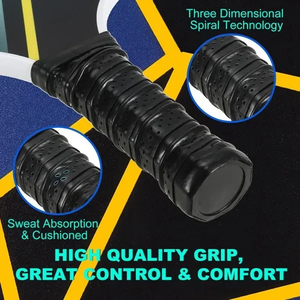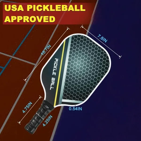 PERFECT STRENGTH & RIGIDITY MATERIAL - This Pickleball paddles use composite polymer core, which has perfect strength and rigidity, and is light in weight, provides nice bounce, reduces ball deflection, which improves your pitching performance. The pickleball paddle strikes the perfect balance between great control and power. SUPERIOR EDGE GUARD - The edge of the racket is protected. When your ball falls to the ground, you don't have to worry about damage of the racket. You can do your best to complete the game. And the thin edge protection will not give you a sense of weight, so you can balance the process of wave the racket. RACKET SPECIFICATIONS - USA Pickleball Approved(USAPA), our pickleball paddle weighs 8 ounces and measures 15.7"L x 7.8"W. Grip Circumference: 4.25 inches, Grip Length: 4.75 inches, Pickleball rackets come with a durable protective bag. Every pickleball paddle of us is designed to be an awesome pickleball paddle for either a beginner or a professional player. COMFORTABLE GRIP - High anti-slip, abrasion resistant and durable one-piece grip for maximum comfort. Pickleball paddle is perforated, sweat-absorbent, and cushioned, to allow for a better paddle grip, you can have a great experience for the exercise. OUTDOOR ACTIVITIES - we can with friends, family, lovers, or almost any other person to carry out the sport, perfect for family gatherings