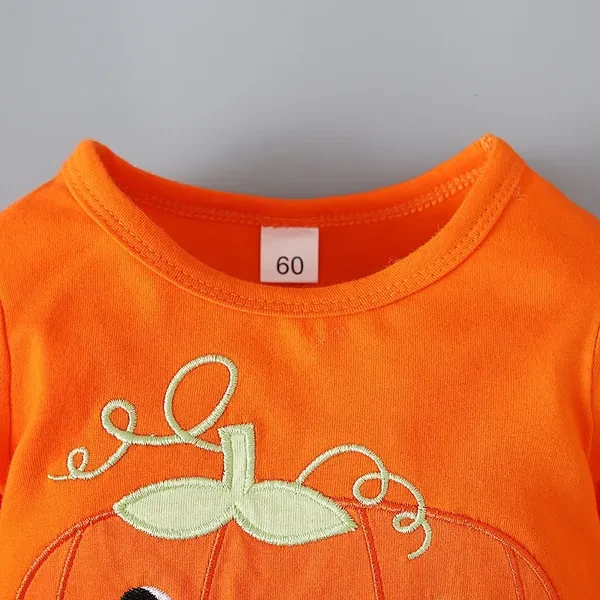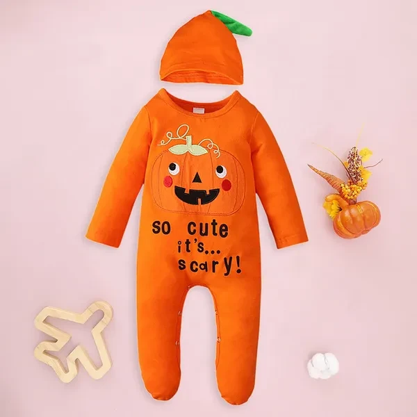 Halloween Pumpkin Baby Boys Girls Long Sleeves Romper Jumpsuit with Beanie Clothes for 0-12 Months