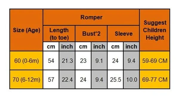 100% Brand New&Good Quality Material: Cotton Blend Color: As Picture Size: 60 70 suits for 0-12 Months. Please check our detailed size chart, 1 CM=0.39 INCH. Attention: - Manual size measurements, please allow 1-3 CM differs. - Color may be little different due to monitor, thank you. Package included: 1 x Baby Jumpsuit with Beanie