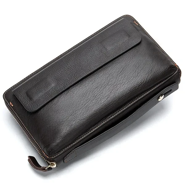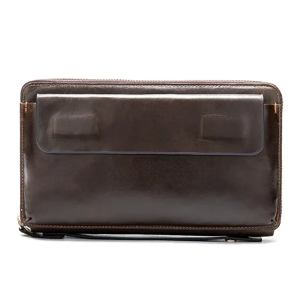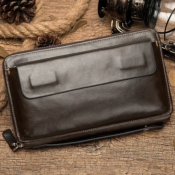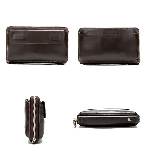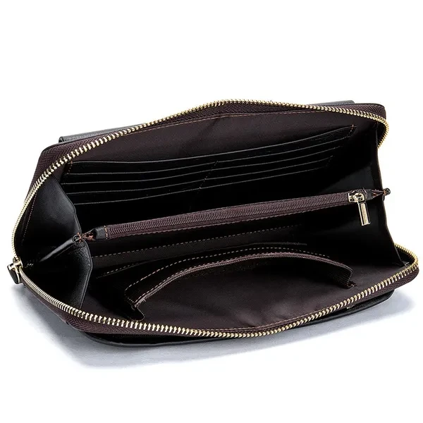 High Quality Soft Genuine Leather Mens Long Cellphone Clutch Wallet Business Purse for Men Card Holder Hand Bag