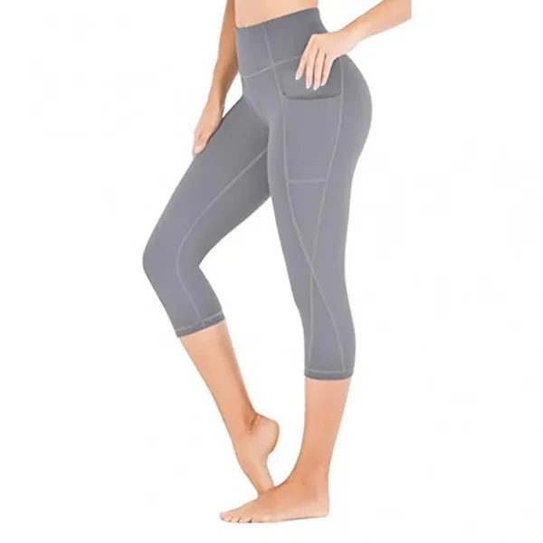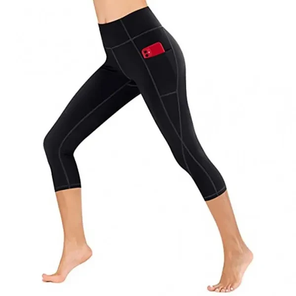 High Waist Tummy Control Women's Printed Capri Leggings - Workout Yoga Pants with Pockets - Athletic Sportswear