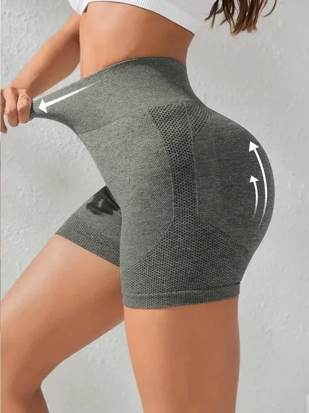 High Waisted Seamless Sports Shorts - Active Shorts with Butt Lifting, Slimming, Stretchy, and Sweat-Wicking Fabric for Fitness, Gym, and Yoga - Solid Colors