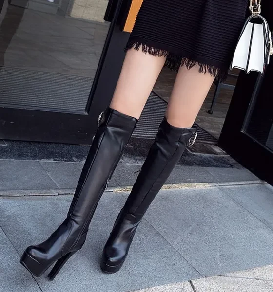 We suggest if you want make a correct choice you should choose by size chart in the image Note Our size is not standard US size, and it is only equal to foot length! Look,The size you select is USA size when you make order,NOT UK SIZE!!!Thanks a lot! Department Name: Adult Item Type: Boots Insole Material: Short Plush Season: Winter Upper Material: PU Fit: Fits true to size, take your normal size Platform Height: 3-5cm Heel Height: Super High (8cm-up) Shaft Material: PU Lining Material: Short Plush Heel Type: Spike Heels Pattern Type: Solid Fashion Element: Platform Toe Shape: Round Toe Closure Type: Zip Boot Height: Knee-High EUR SIZE: 33-43 heel height: 12cm platform: 3.5cm shaft height: 42cm boot opening: 34cm 1.If you are not satisfied with something please contact us before you leave us a Negative feedback, we will always try our best for 100% customer satisfaction. That's why we are here! All emails will be answered within 48 hours (Sun. excluded). So please do not hesitate to email us! 2.Your 5-Star Positive Feedback