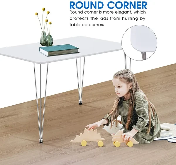 - [Eco-friendly & Safe Leisure Table]: The dining table is made of 0.7" thick P2 grade MDF Board, non-toxic, eco-friendly, professional SCS Certification approved. The round corner is more elegant, which protects the kids from hurting by tabletop corners. No hustle-bustle while they're running.