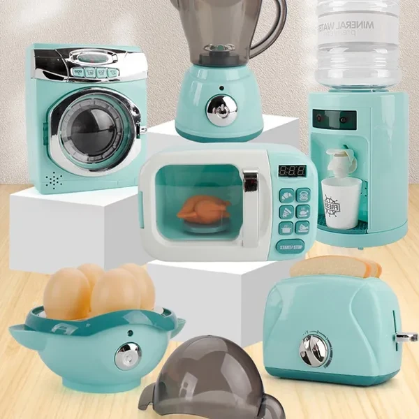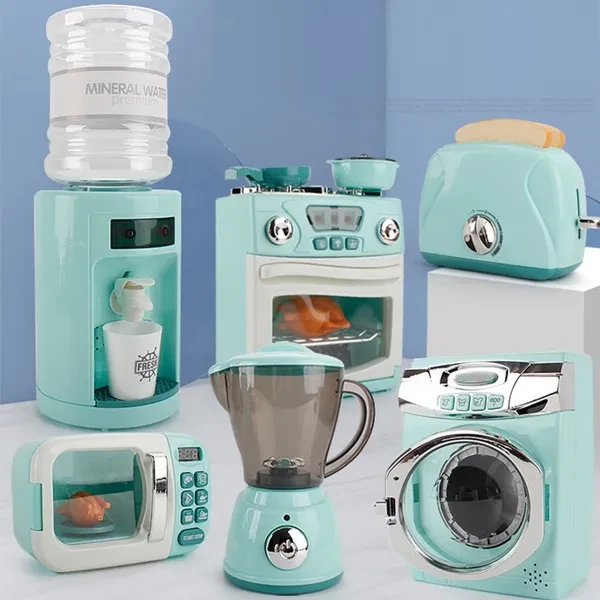 Kids Mini Size Household Appliances Kitchen Toys Children Pretend Play Kitchen Accessories Toy Simulation Washing Machine Bread Maker Microwave Oven Girls Play House