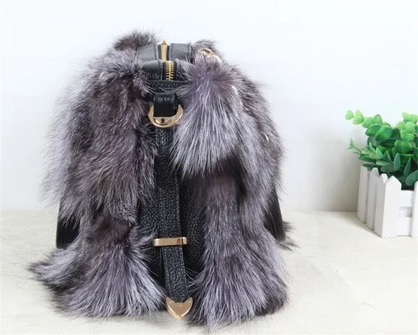 Fox fur bag Material: fox fur Color: black, brown Size: length 33cm, width 15cm, height 23 cm,