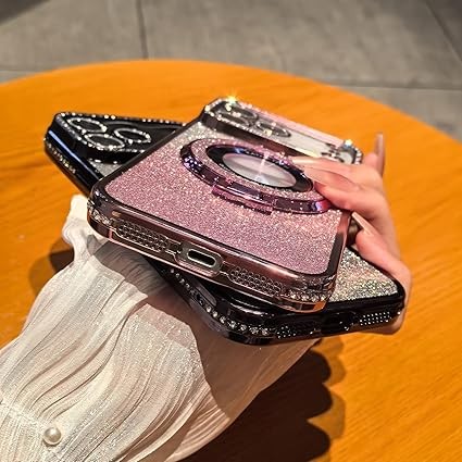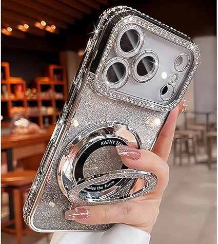 Compatibility: The Magnetic Glitter Stand for iPhone 17 Pro Case is specifically designed to be compatible with MagSafe, allowing you to effortlessly attach and remove your phone from the magnetic wireless charger