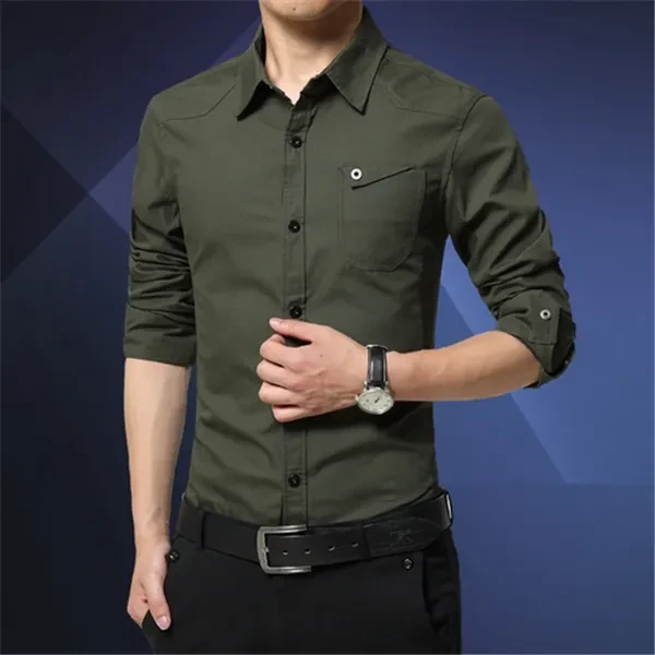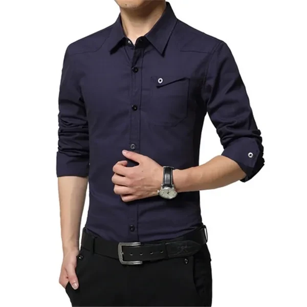 Men Dress Shirts Slim Fit Male Casual Shirt Long Sleeve