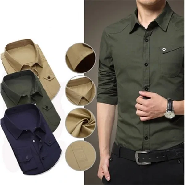 Description Style: cardigan Sleeve length: long sleeve Design: the pure color Thickness: ordinary Item type:men casual shirts Color:white,black,darkblue,armygreen,khaki,wine red Size:M,L,XL,XXL,3XL,4XL,5XL
