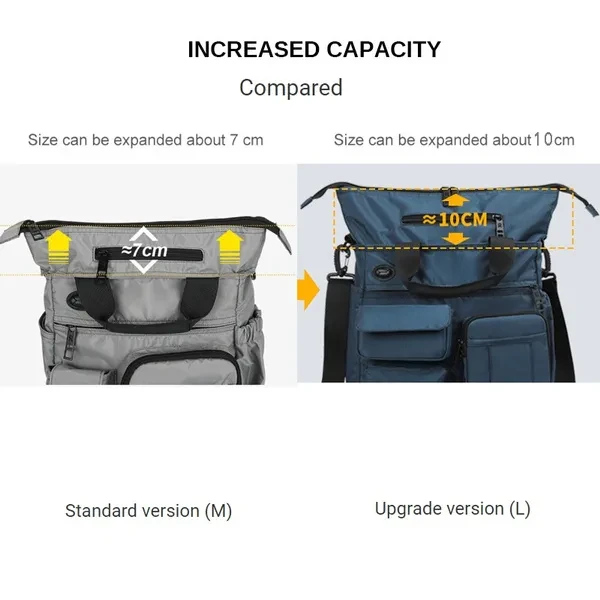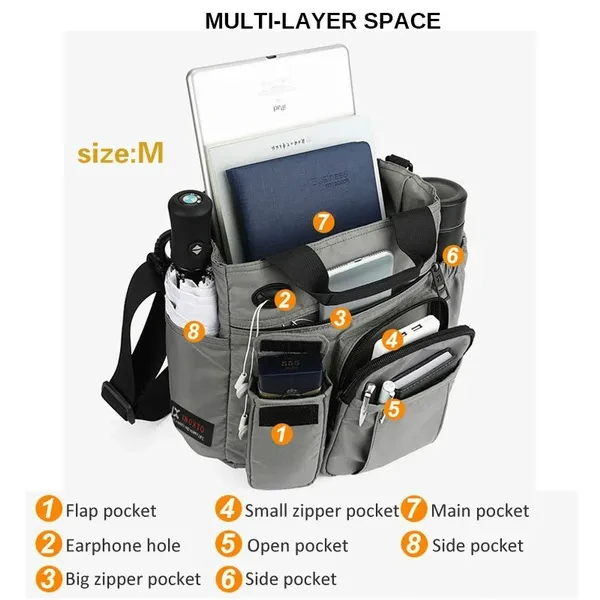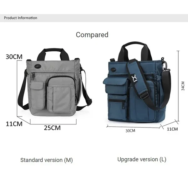 Material: Waterproof Nylon Color: Black,Gray,Blue Size: M(25*11*30cm),L(30*11*34cm) Product feature: Large Capacity ,More pocket, Light weight,Waterproof fabric, with Headphone hole Capacity : wallet,cell phone,notebook,umbrella,Thermos cup,etc. Note: Please allow 1-3CM differs due to manual measurement. (1 inch=2.54 cm,1 cm=0.39 inch)​ Due to the different display and different light, the picture may not reflect the actual color of the item. Thanks for your understanding.