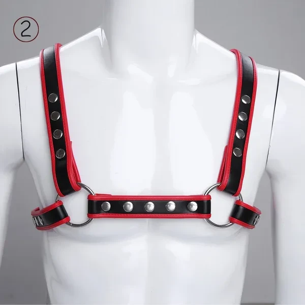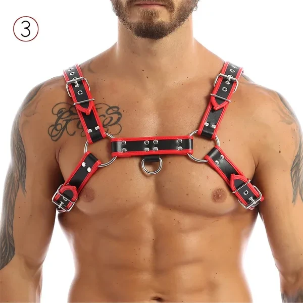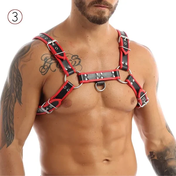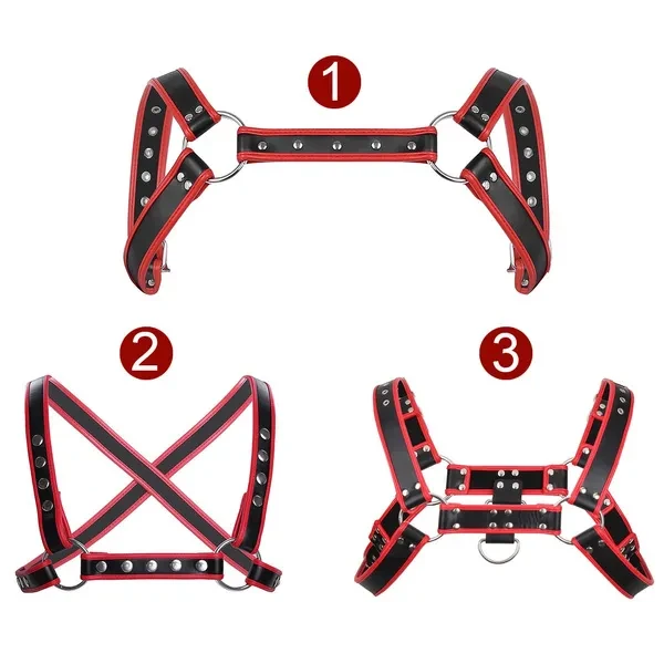Set Include: 1Pc Harness Belt Condition: New without tag Material: Leather Color: Black&Red(as picture shown) Features: Men's Shoulder Chest Harness Straps, Free Size. Made of leather with adjustable buckle straps, easy to wear. Double shoulders with metal O-rings at back connected a band. Unique design makes you more fashion, accentuates chest and arm muscles. Excellent for clubwear or cosplay, party, lingerie night or self-pleasure.