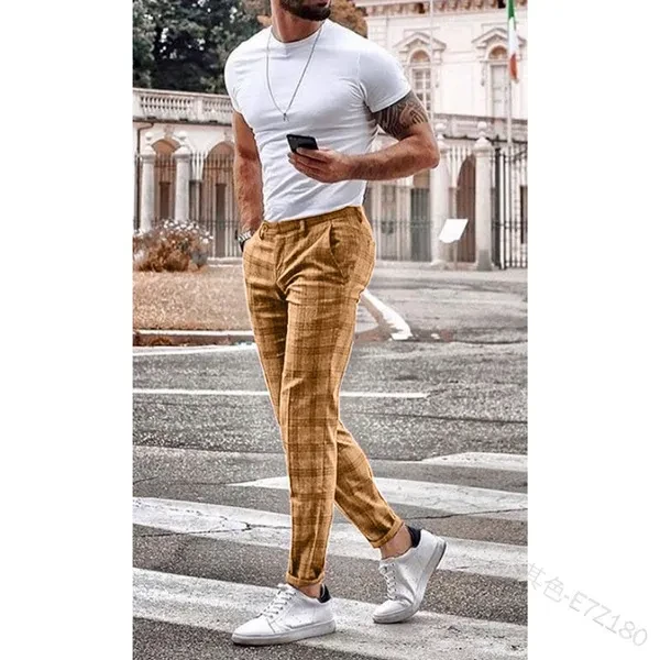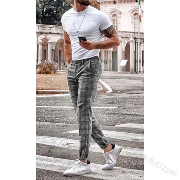 Men's Fashion Plaid Pants Business Trousers Casual Jogger Cotton Long Pants