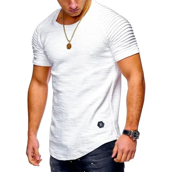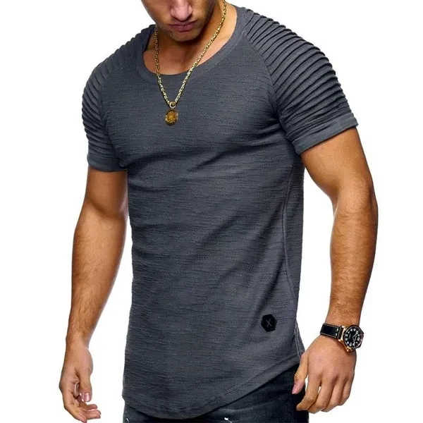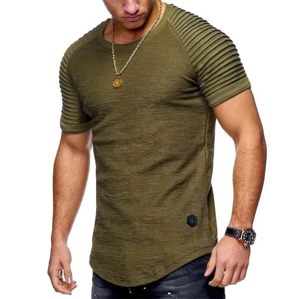 Men's Casual Tops Summer Short-sleeved T-shirt Solid Color Fold Round Neck Clothes Men's T-shirt
