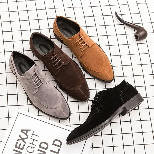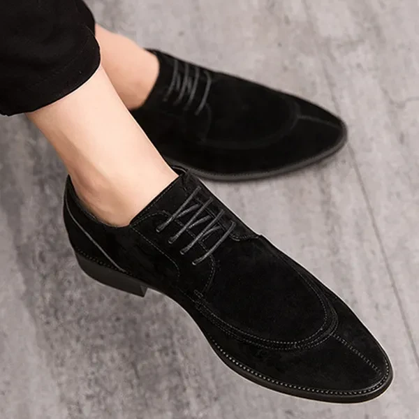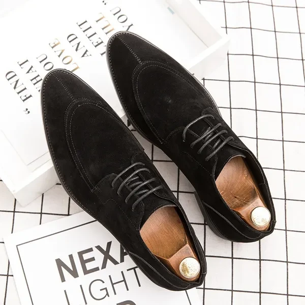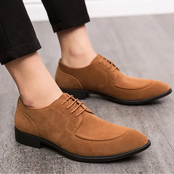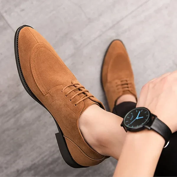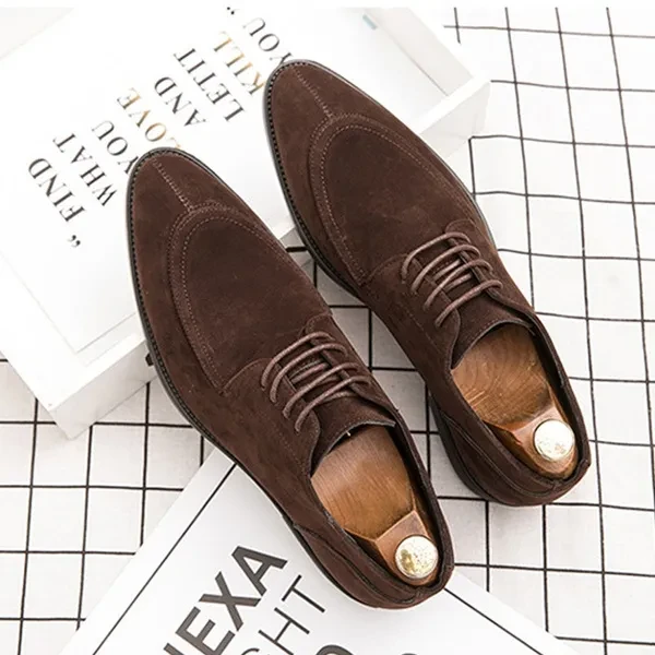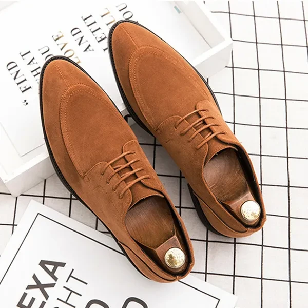 Men's Classic Business Suede Lace-Up Korean-Style Toe Slip-On Nude Shoes