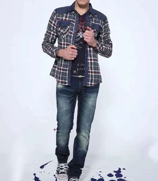 Mens Dress Shirts Long Sleeve Luxury Slim Fit Plaid Checks Camisas Casual Shirts