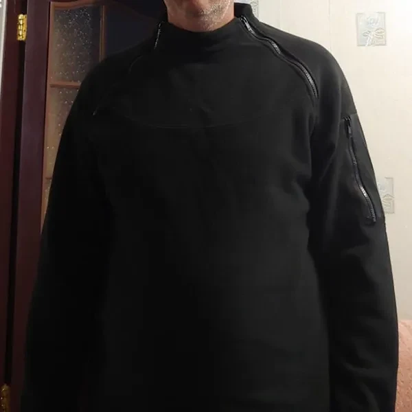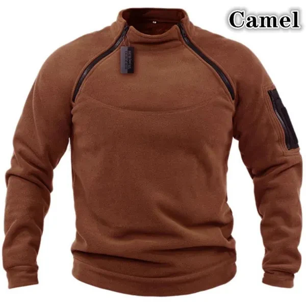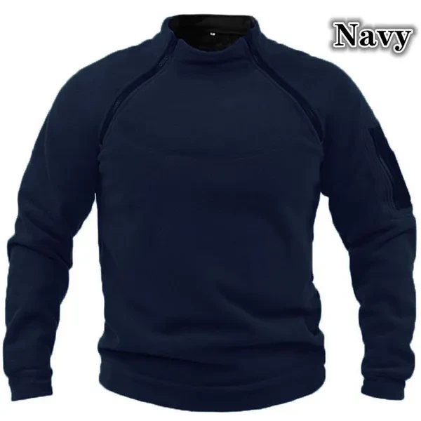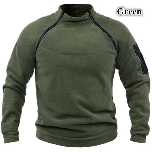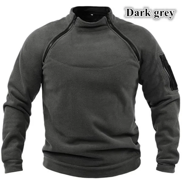 Men's Fashion Winter Warm Fleece Double Half Zippers Pullover Sweatshirt Tactical Winter Outdoor Sports Coat