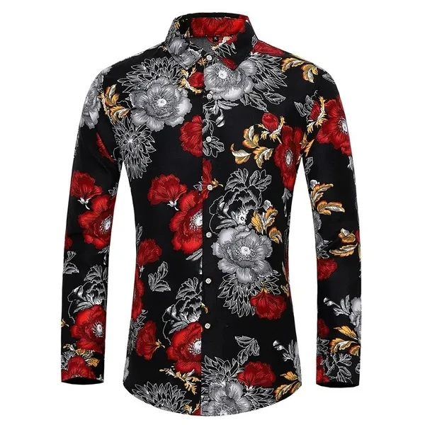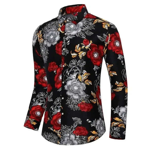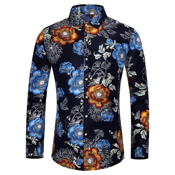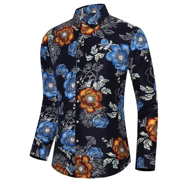 MEN`S Flower Shirt/Floral Shirt Long-sleeve Button Up Shirt Fashion Male Casual Blouse (M-7XL)