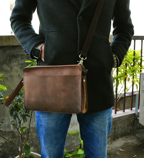 Product NO: H1016 (2753) Material: Genuine Leather Weight: 0.5kg Size: 27cm (10.5") x 19cm (7.5") x 7cm (2.5") This is a hight quality wild style real leather business handbag organizer helps to keep your commodity. It comes with a removable handbag strap. it can also be used as a shoulder strap with a removable shoulder strap. This kind of leathe is easy to get scratches on the surface and also come with a genuine leather smell, please be noted before placing the order, thanks.