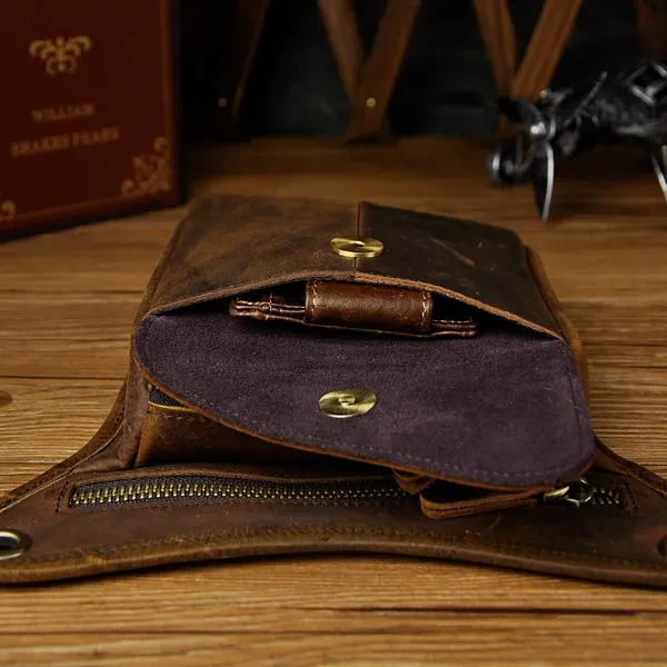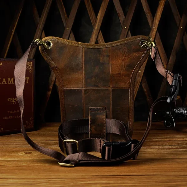 Product NO: G1005 Material: Genuine Leather Size: 15 x 3.5 x 22 cm (5.9 x 1.37 x 8.6 inch) Weight: about 0.4kg It's a little bag around your waist and leg. It looks to sit in the perfect location for east access while riding or climbing. This kind of leathe is easy to get scratches on the surface, please be noted before placing the order, thanks.