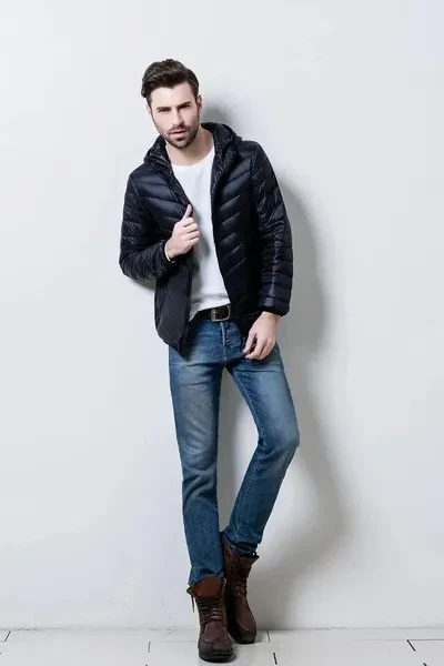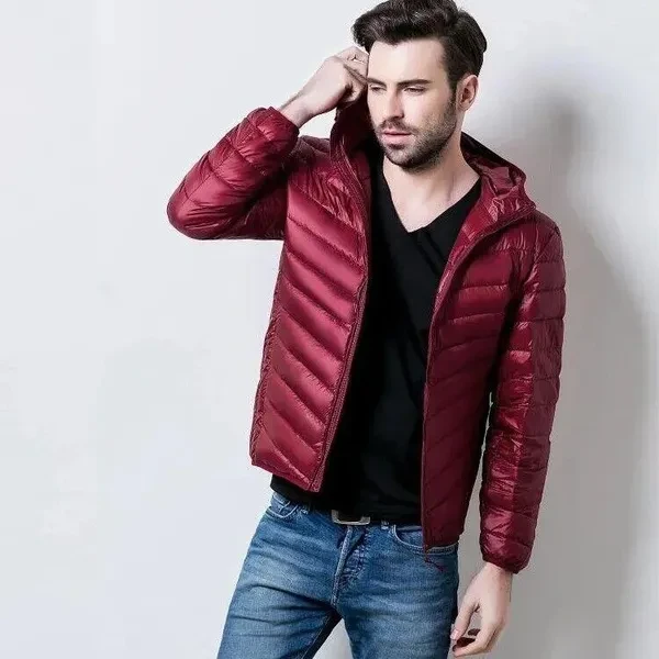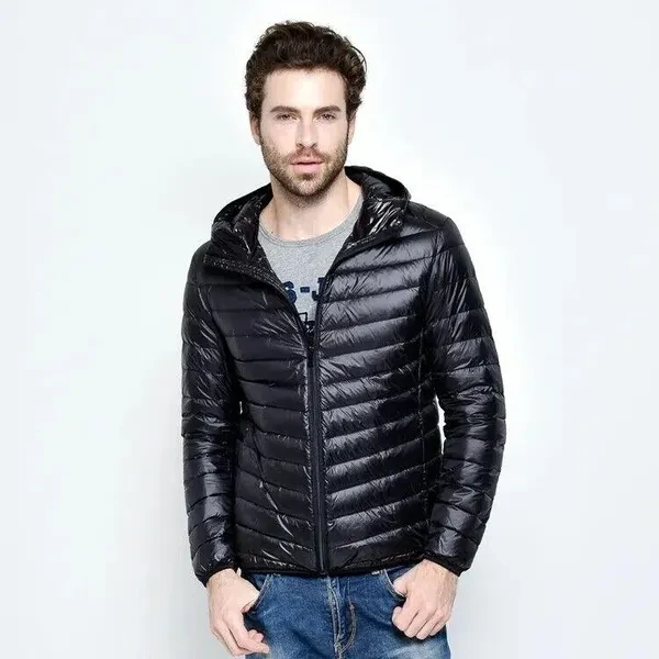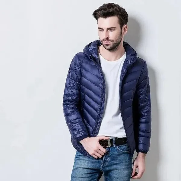 Mens Jackets Duck Down Ultra Light Travel Portable Thin Sports Hooded Jackets