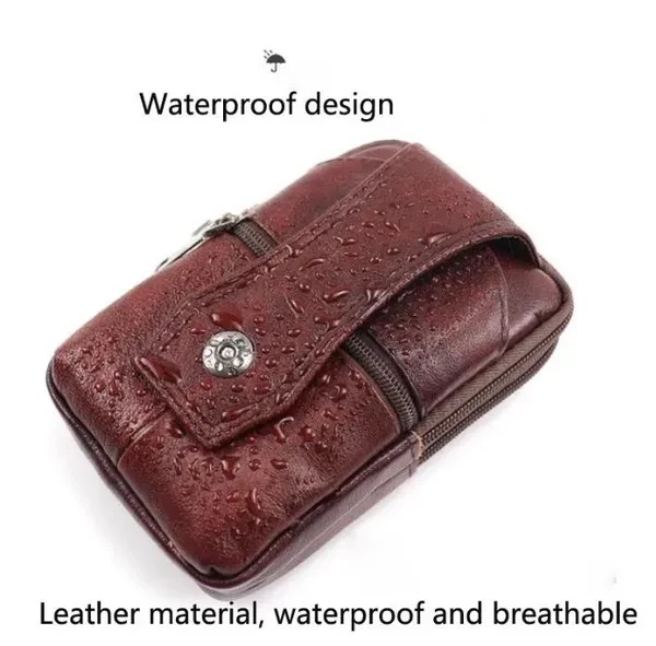 Men's Leather Waist Bag Multifunction Fanny Pack Large Capacity Belt Bag Shoulder Bags Crossbody Bags Multi-layer Buckle Mobile Phone Bag