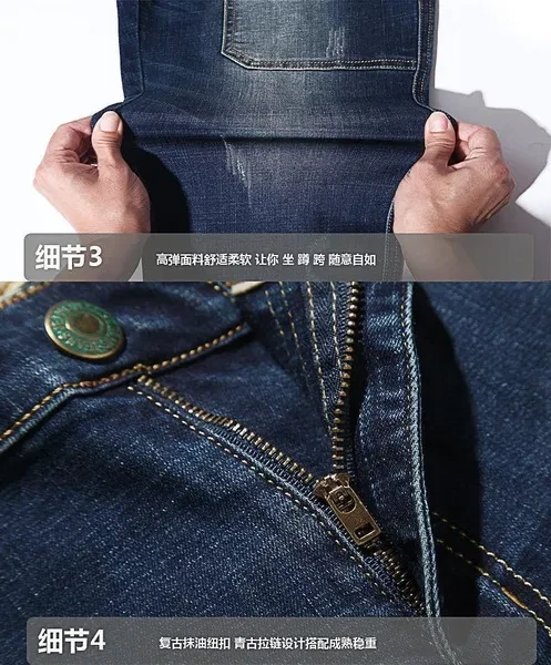 Product description Color: navy blue, light blue, black Product category: jeans Elasticity: high elasticity Length: trousers Waist type: high waist Size: 28,29,30,31,32,33,34,36,38,40,42,44,46,48(Pls read the size chart) Thickness: ordinary Fabric Name: denim Applicable scenario: Daily Applicable gender: Male Pants: loose Error range: 1-2cm Process: Collage / splicing Hem style: small feet Package Included:1x jeans Notes: 1. This is Asian size, which is usually smaller than US/Euro size, please check the size chart carefully before you place an order. 2. If you can't choose the correct size, please leave a message in English, about your height in CM and weight in KG, then we will help you to choose the right size. 3. The picture shown is 100% rear object photography, however, different computers display colors in different ways, the actual project color may be slightly different from the color of the real object. 4. Our size table is based on actual product,please allow 1-3cm differs due to manual measurement. 5. .If you are Satisfied with the goods, Please Give praise, if you are in doubt please feel free to contact us. 6. You are welcome to visit our store, maybe you will find other goods your are interested. I wish you a happy shopping and have a nice day !