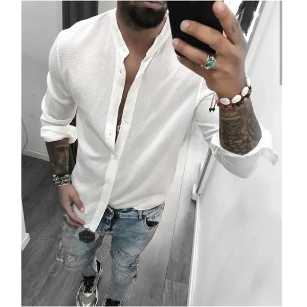 Men's New Long-sleeve Shirts Men Summer Casual Fashion Linen Shirts