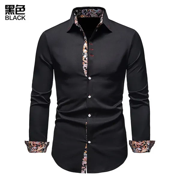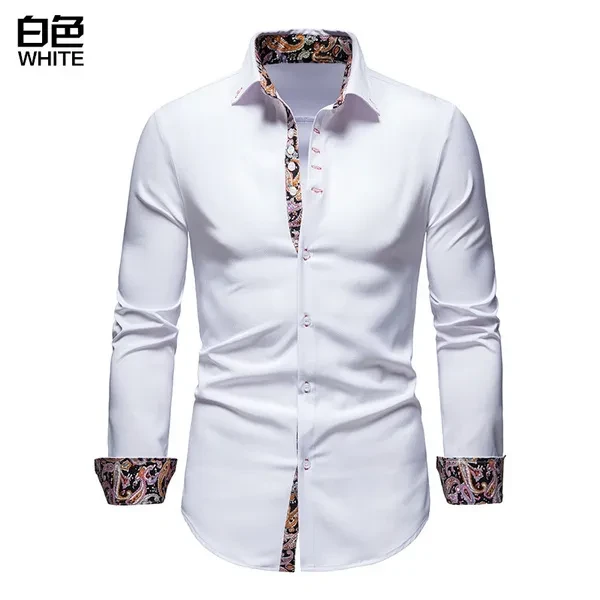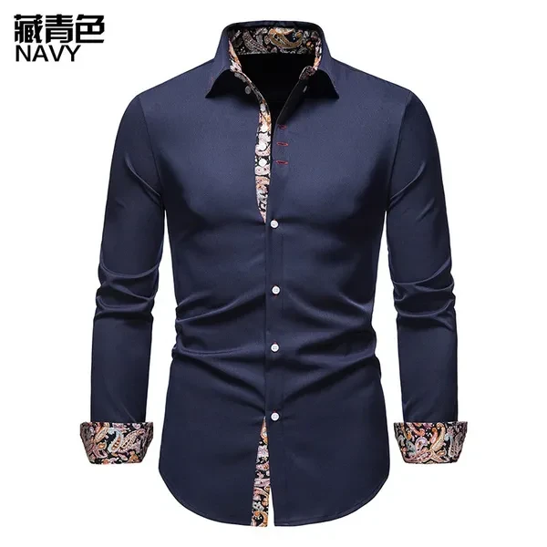 Men's Slim Fit Casual Printed Shirt Long Sleeve Shirt