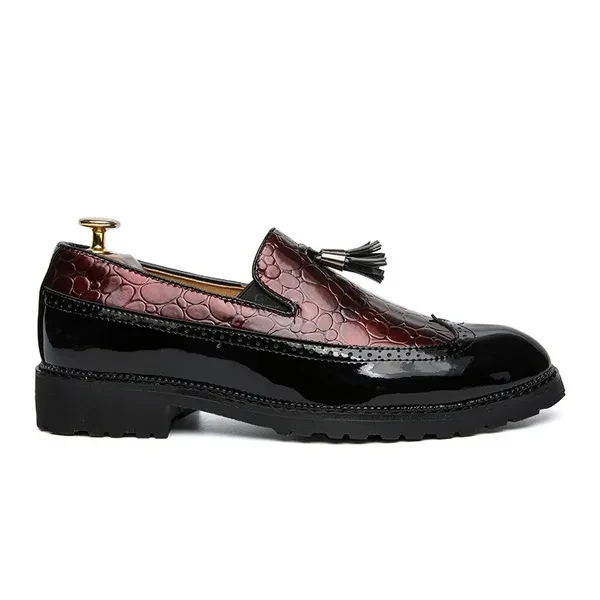Men's Wine RedBlackWhite Wingtip Tassel Loafers Mens Embossed Vamper Leather Slip-ons Mixed Color Casual Dress Shoes for Men Size 38-47