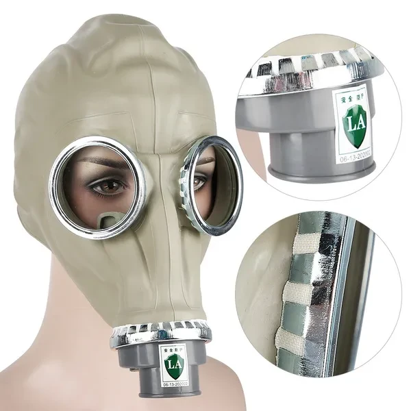 Features: 1. Made of natural rubber material, food grade, non-, odorless and . High elasticity, suitable for most person. 2. Two round transparent lens for viewing, which is high strength, shock resistance and oxidation resistance, effectively your eyes. 3. interface design for high tightness with hose and canister. Easy to install and remove. Built-in large breathing valve. 4. Use with different size of canisters for different environment to prevent inhaling harmful gases and steam and particulate matters, etc. 5. Adopts tight sealing at lens and breath ports, provides best for you. Specifications: Material: Rubber Color: Grey White Packing List: 1 * Gas Mask Note: Only include gas mask, canister and hose are not included.