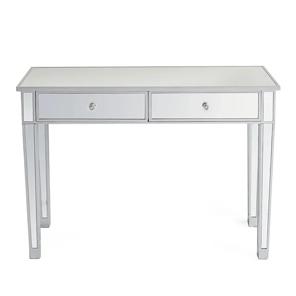 This is our 2 drawers glass mirrored makeup table, which has a beautiful appearance. It is perfect for any room, this mirrored makeup table will glamorously complement your home. With its mirrored finish, it adapts to any surroundings without overpowering yet, catches your eye with its unique presence. Shimmering mirror reflects across the composition. The practical size and function works as well in the living room as it does in the bedroom. Do not hesitate to buy one!