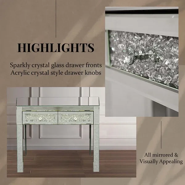 Mirrored Two Drawer Dressing Table Console Vanity Make-up Desk Bedroom Furniture
