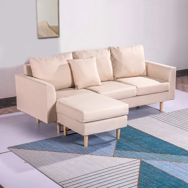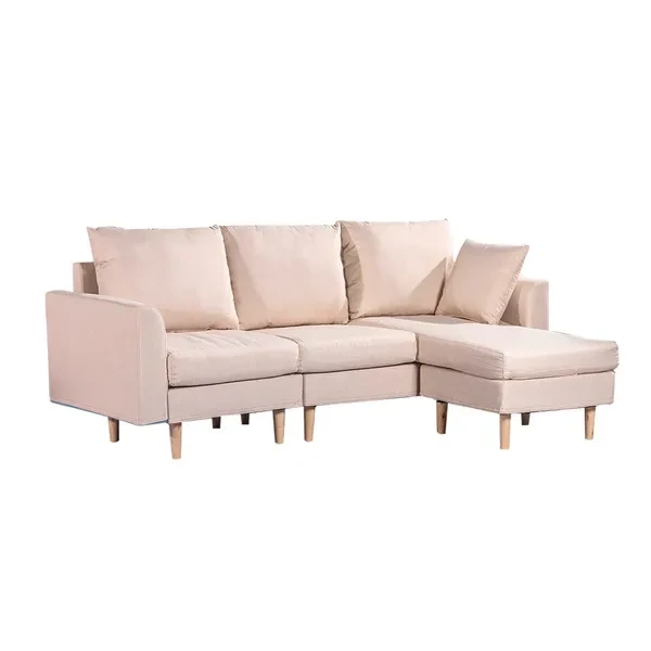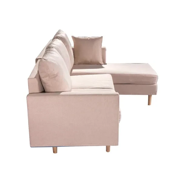 L shape corner sofa bed 3seater fabric sofa with left or right footstool couch settee high back soft sofa bed Style Modern Type Sofa bed Material Fabric Colour Beige, grey To Seat More than 4 Room Living Room Pattern Solid Firmness Soft Descriptions: This corner sofa emphasizes versatility. It has a reversible design that means it can be right or left facing and a sleek, understated design that makes it a good fit in any living room or bedroom. They will be an excellent complement of any living room, home office, study, children's bedroom or hallway Solid hardwood Frame make up overall structure, sturdy and durable & Strong plastic legs, great load bearing performance and longer service life High elastic sponge wrapped sprung seat cushions with added support,quick rebound, The pressure is evenly dispersed and not easy to collapse &The pillow is filled with high quality doll cotton, super comfortable, resistant to deform, durable and sturdy, bringing you great relaxation feeling. Features: This sofa can be assembled as both left & right hand sofa Perfect for bedroom, living room, study, office, etc.. Its design maximizes space, making it ideal for flats and apartments. High elastic sponge wrapped sprung seat cushions with added support, quick rebound, bringing you great relaxation feeling High backrest and thick padded seat, it will offer you the maximum comfortable seating experience. Please note: this requires self assembly Dimensions: Total Size:W197*D129*H69cm Colour:Beige , grey