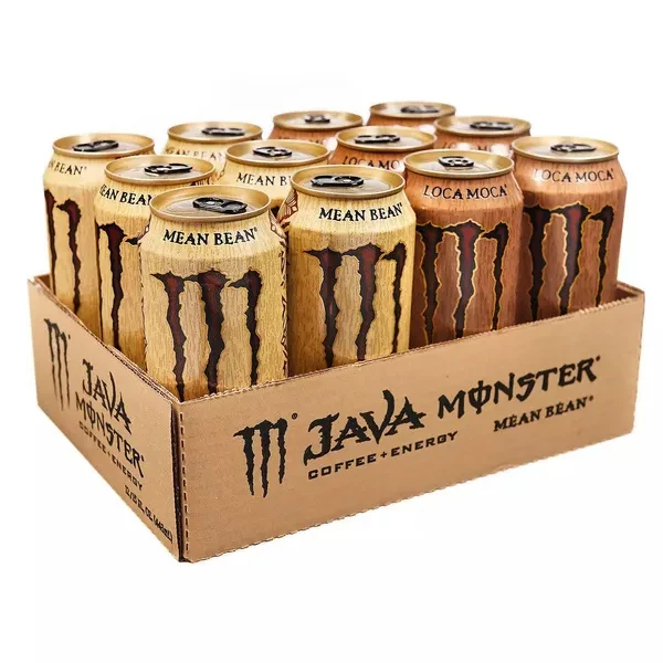 Delivery is not available to Puerto Rico, HI, AL,AE, APO/FPO or PO box addresses Highlights:- Java Monster coffee-flavored energy drink Energy drink to help you stay ahead and perform better 2 great coffee flavors with Monster's energy-boosting 188 mg of caffeine per can plus B vitamins About this item Product details Specifications Stay energized with the Monster Java Variety Pack. It offers a cool and creamy alternative to the typical coffee dribbled out by a noisy machine. Each pack contains two Monster Java flavors to keep things interesting. Who Makes Java Monster Drinks? These tasty drinks are produced by Monster, one of the leading energy drink brands in the world. Monster strives to craft chilled energy drinks that are delicious, convenient and of course, made with caffeine to energize the body and mind. Monster coffees are made to be enjoyed chilled, making them great for those who prefer cold coffee year-round or just as a refreshing summertime treat. They're a staple in homes, offices and convenience stores across the country. What's in the Monster Java Variety Pack Each pack contains 12 cans of Monster Java flavors—six Mean Bean® and six Loca Moca®. Monster coffee energy drink cans are easily portable as well as perfectly sized for satisfying the need for coffee and energy. While Mean Bean offers classic chilled coffee and cream flavors, Loca Moca is spiked with a dose of real chocolate, a favorite for those who love their local coffee house's iced mocha. They're both made with brewed coffee, cream and sugar, as well as an array of added vitamins and minerals to leave drinkers feeling energized and up for any challenge. Instant Refreshing Drink:- Switch off the coffee machine. Keep a pack of Java Monsters in the fridge, grab a can and go. They're also excellent for restocking vending machines and convenience stores. Since they are also made with real cream, there is no need to buy coffee-specific milk or cream again. The Loca Moca Monster Java flavor also offers a rich chocolate taste, making it superb for an afternoon indulgence.
