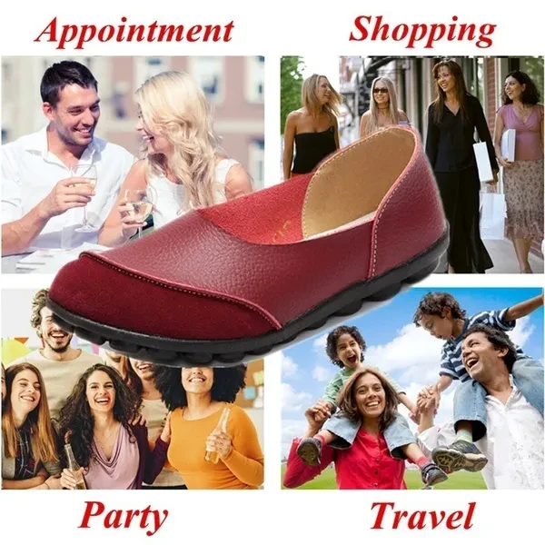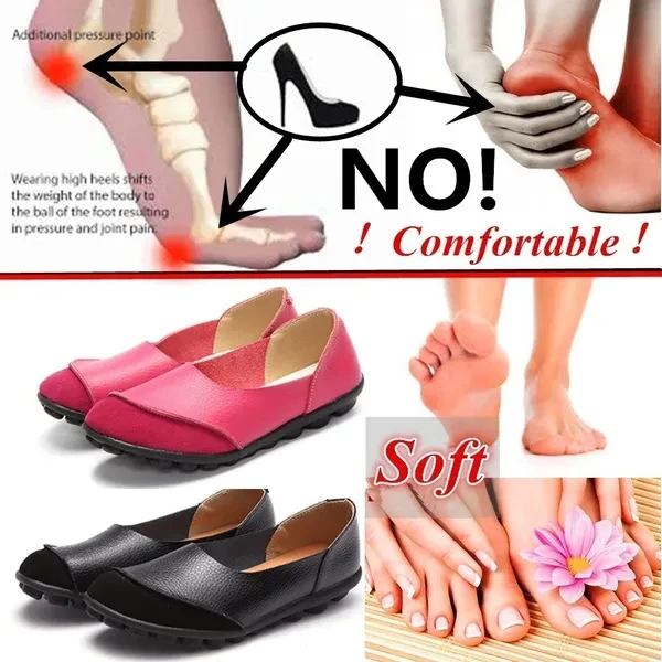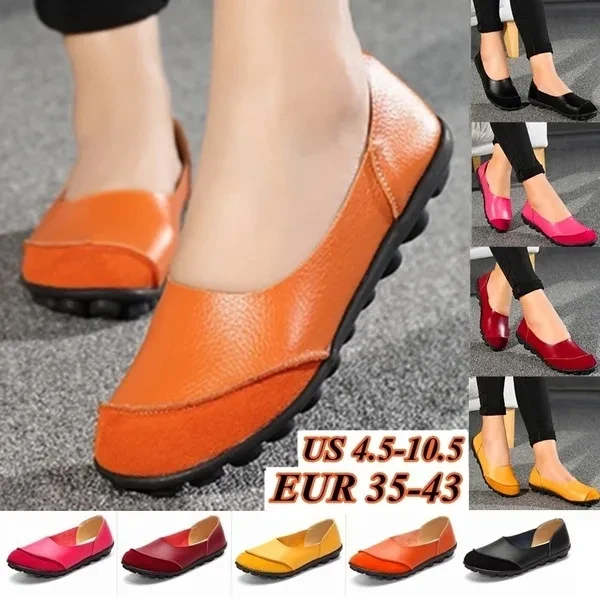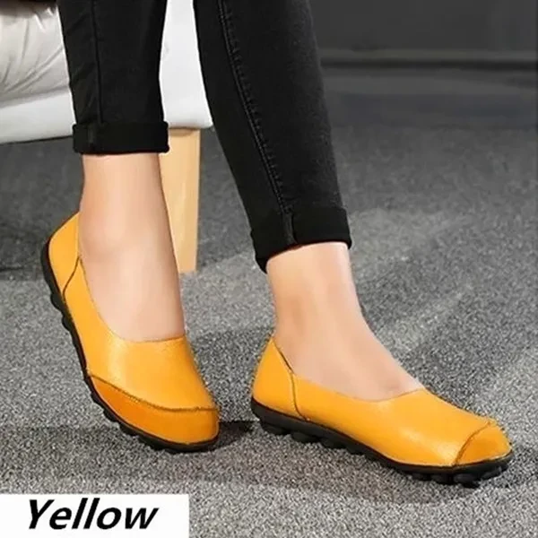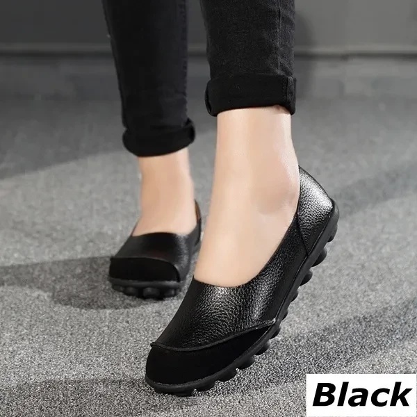 Multiple SizesGuenine Leather Women's Flats Slip on Shoes No-slip Loafers Solid Color Soft Sole Shoes