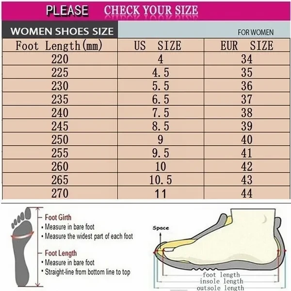 "If your feet are wider or larger,we suggest you choose a larger code than your usual size. Please allow 0.5-1cm measure error,thank you! US size 4.5=EU size 35=Foot length 220-225mm US size 5.5=EU size 36=Foot length 225-230mm US size 6.5=EU size 37=Foot length 230-235mm US size 7.5=EU size 38=Foot length 235-240mm US size 8.5=EU size 39=Foot length 240-245mm US size 9=EU size 40=Foot length 245-250mm US size 9.5=EU size 41=Foot length 250-255mm US size 10=EU size 42=Foot length 255-260mm US size 10.5=EU size 43=Foot length 260-265mm Inner material: cortex Color: yellow, black, wine red, rose red, orange Material: leather sole