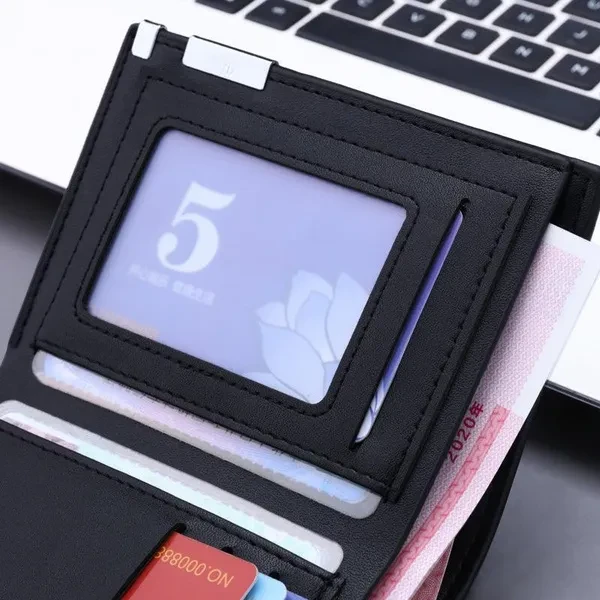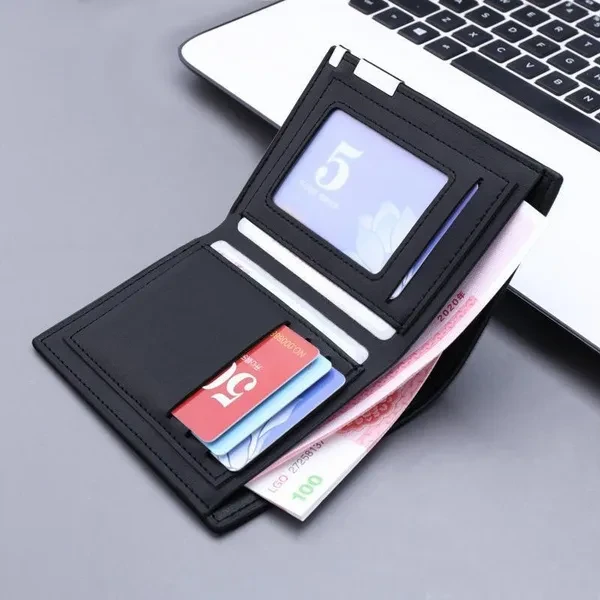 description Men's multifunctional casual short wallet, fine grained fashion wallet. Simple retro style, ultra-thin short style, selected materials, soft and comfortable. It has good toughness, strong load-bearing capacity, strong and durable, and feels thick and soft, and it is smooth and comfortable when pinched in the palm of the hand. specification Material: PU Size: 12cmX9.8cm Color: black, brown Structure: 1 photo slot, 5 card slot, 2 bill slot Style: Men's Style: fashion quantity: 1 Package includes: 1X wallet