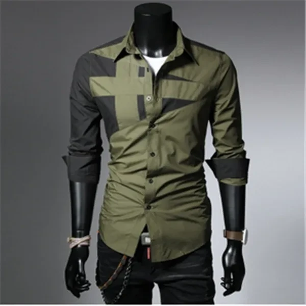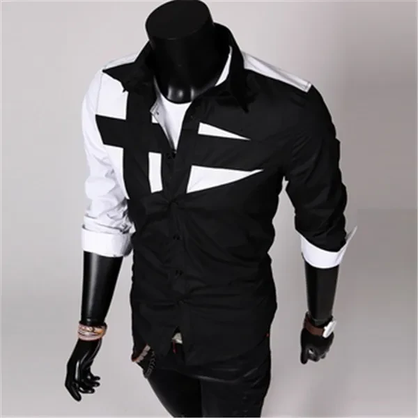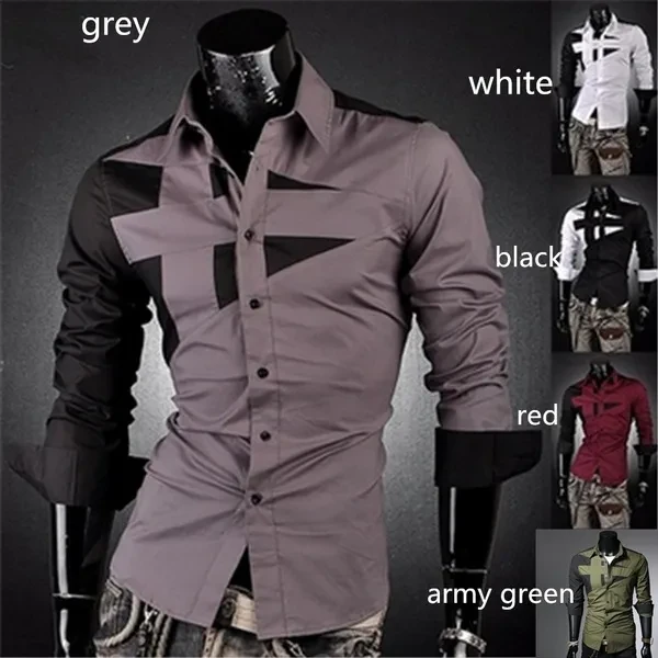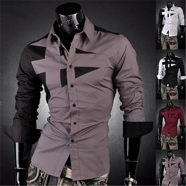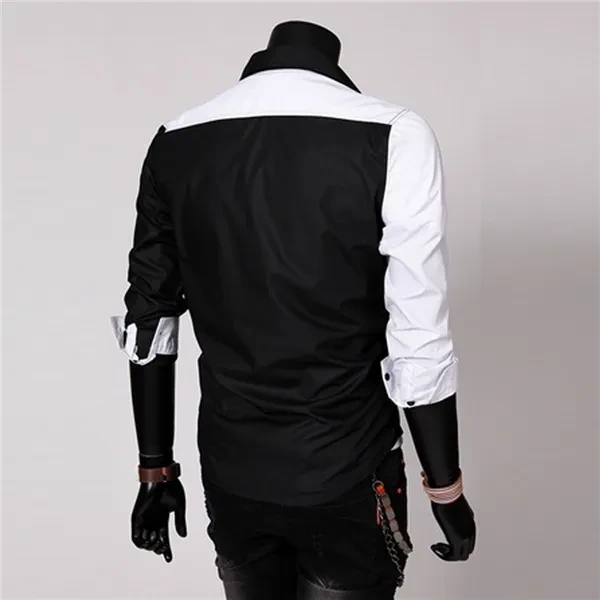 New Fashion Men's Slim Fit Dress Shirt Men's Spell Color Long Sleeve Shirt Leisure Bump Color Shirt
